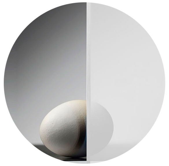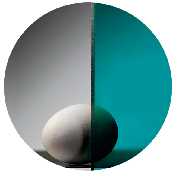| იწარმოება 2 სახის სინათლის გაბნევის პოლიკარბონატი: • უფერო სინათლის გაბნევის დანამატით, 90% - მდე გამჭვირვალობა 1,5 მმ სისქის ფირფიტისათვის • თეთრი სინათლის გაბნევის დანამატით, გამჭვირვალობა 70, 65, 60, 55, 50% და ა. შ. თეთრ ფერამდე. |